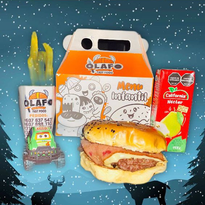 la cajita feliz, Nuguets o Hamburguesa mini, papa francesa, jugo de cajita, juguete sorpresa para niña o niño